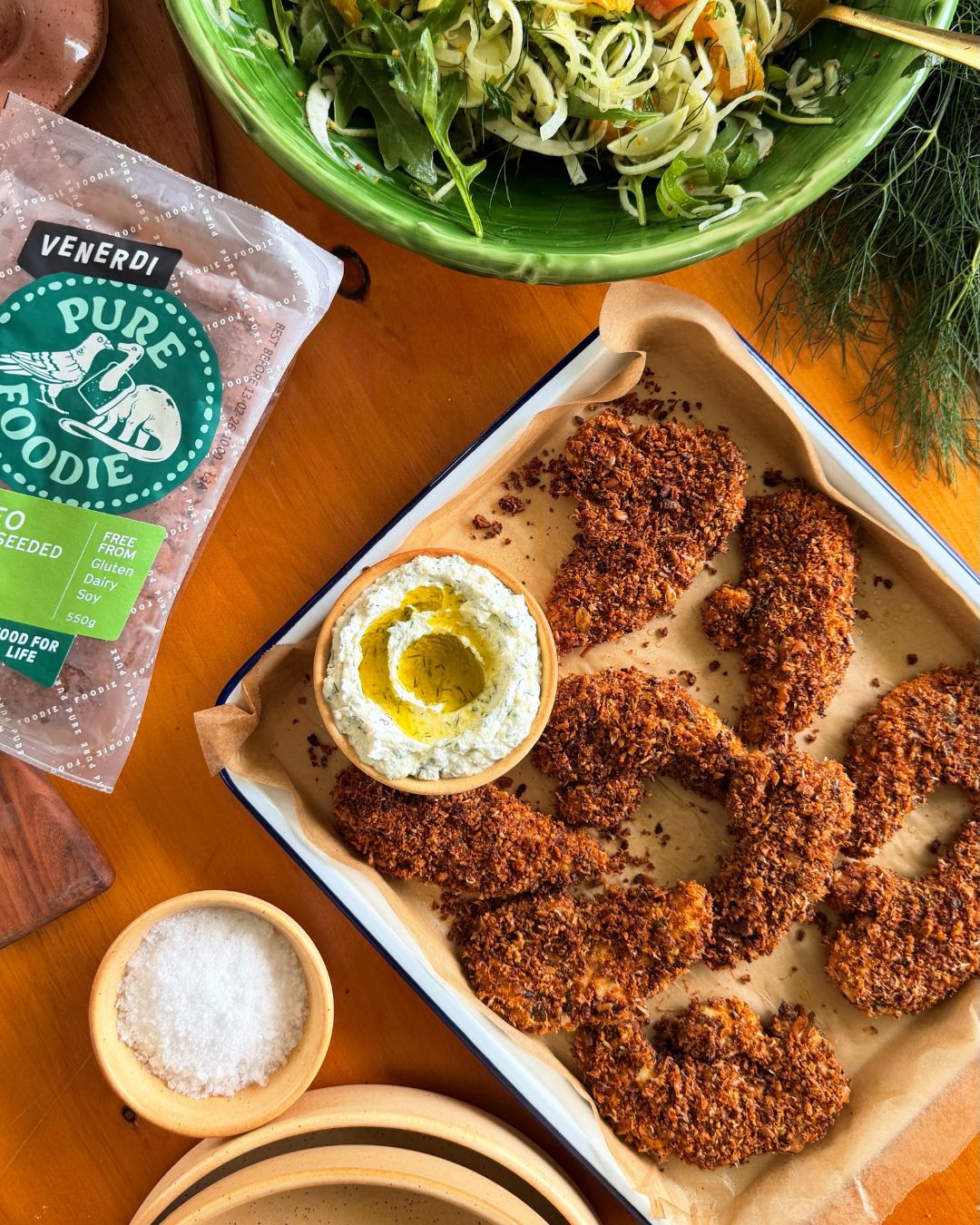 Our Pure Foodie Paleo Super Seeded Bread is great for morning toast with eggs… but it also happens to make the best crunchy, seedy crumb for chicken. You must try this delicious recipe made for us by the lovely Steph Peirce.